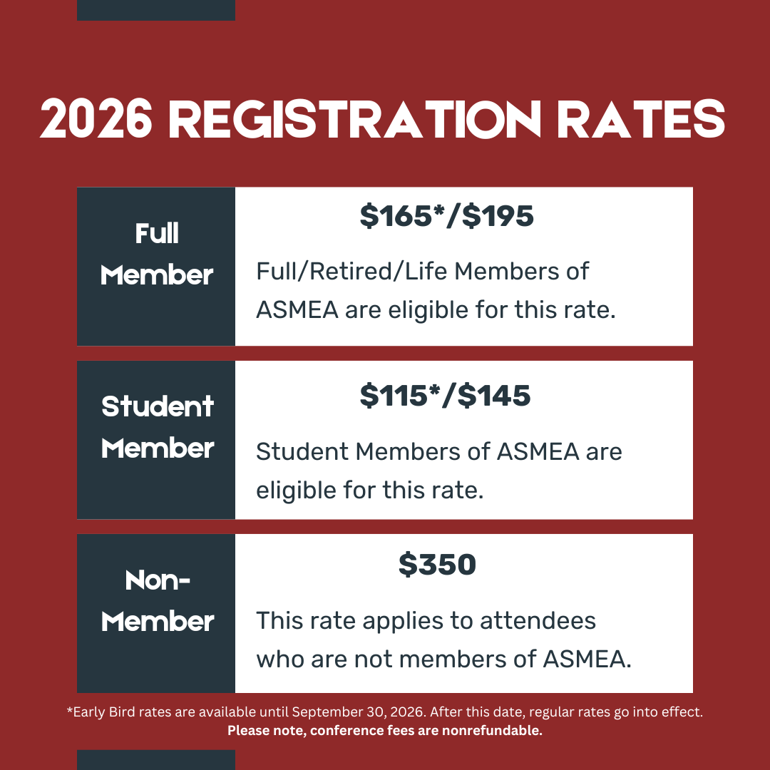 Nineteenth Annual ASMEA ConferenceNovember 7 - 9, 2026 | Washington Georgetown Marriott Hotel | Washington, D.C.Save the Date! The Nineteenth Annual ASMEA Conference will take place on November 7 - 9, 2026 in Washington, D.C. at the Washington Georgetown Marriott Hotel. Participate at this year's conference by submitting a paper or panel proposal, applying for a grant or prize opportunity, or registering as an attendee. Below are the current opportunities: